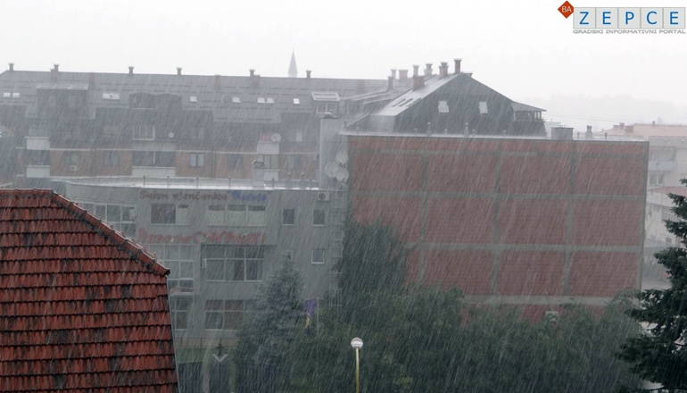 Nekoliko minuta poslije osam sati tamni oblaci su prekrili Žepče, nakon čega je počela padati snažna kiša. Voda je ubrzo prekrila ulice našeg grada. Prema informacijama Federalnog hidrometeorološkog zavoda jutros je u većem dijelu zemlje oblačno sa kišom i pljuskovima. Registrovana je grmljavina u zapadnim i centralnim područjima. Na jugu i istoku Hercegovine je pretežno sunčano,