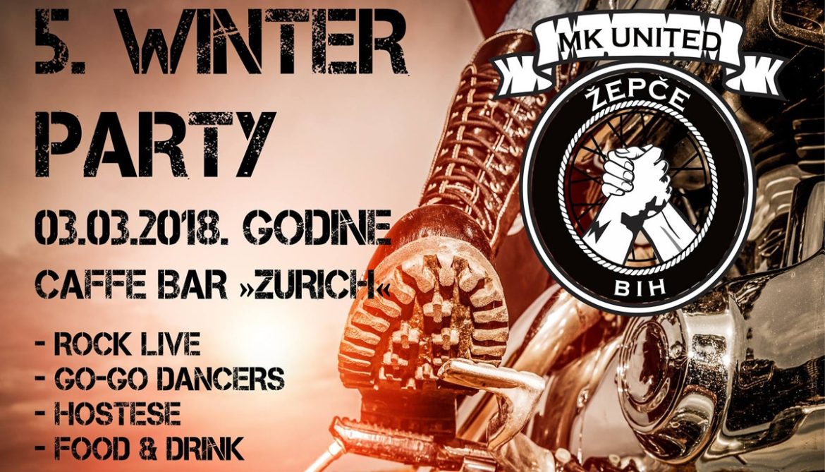 Iz žepčakog Moto-kluba “United” pozivaju sve prijatelje na 5. Winter party, koji će se održati sutra, 03.03.2018. godine, na istoj lokaciji kao i prošle godine (Caffe bar – Zurich Brankovići). Ekipa MK United će se pobrinuti za dobru atmosferu, obilje pića, vrhunsku svirku i najvažnije pravu dobrodošlicu u maniru dobrog domaćina.