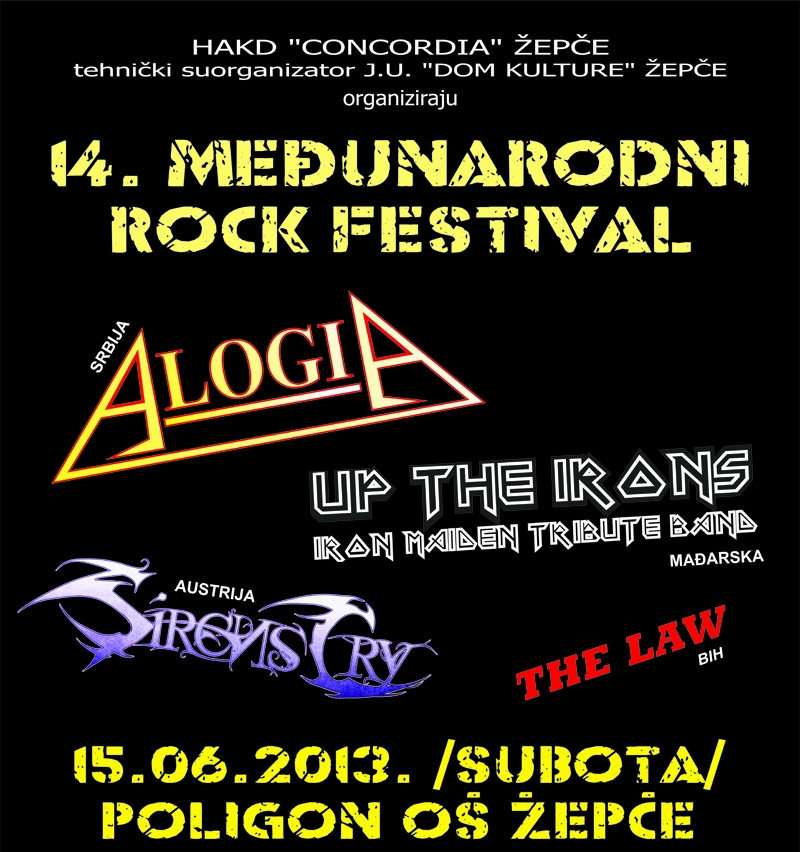 − 15.06.2013.god. – “XIV MEĐUNARODNI ROCK FESTIVAL” na kojem je planiran nastup pored domaćih, rock sastavi iz Srbije, Austrije i Mađarske