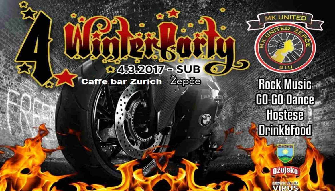 Moto klub „United“ Žepče poziva sve moto klubove, ljubitelje motora, rocka, dobre zabave i druženja na veliki 4. rođendanski Winter party. Iz “United-a” pozivaju i sve sugrađane koji gaje simpatije spram MK “United” Žepče da ih podrže, te dođu i skupa s njima uveličaju ovo cjelovečernje druženje.